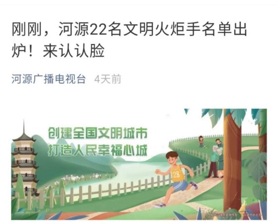 為河源創(chuàng)建全國(guó)文明城市加油助力!我是第八棒火炬手