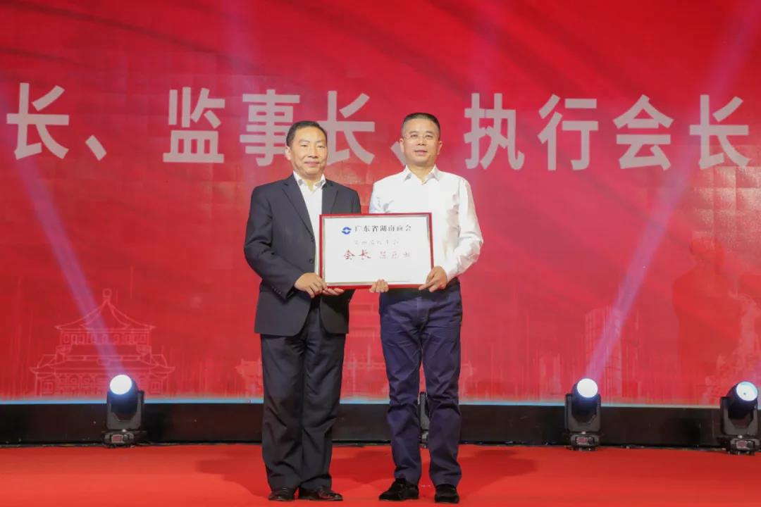 會上,舉行廣東省湖南商會年會暨第四屆理事會會長就職典禮。與會人員一同觀看廣東省湖南商會五年工作回顧宣傳片。同時舉行了第四屆會長、監事長、執行會長頒牌儀式。湖南省委統戰部副部長、省工商業聯合會黨組書記陳瀟為陳樂田會長頒牌;廣東省組織管理局黨組成員、副局長徐祖平為馬兆暢監事長頒牌;湖南省工商聯黨組成員、秘書長祝擁軍,湖南省人民政府駐深圳辦事處副主任石峰崗為執行會長劉季春、鄭耀、幸志剛、戴促輝、盧光輝、童迪平、李軍、毛繼鴻、李亦非、許少波、王美賢頒牌。