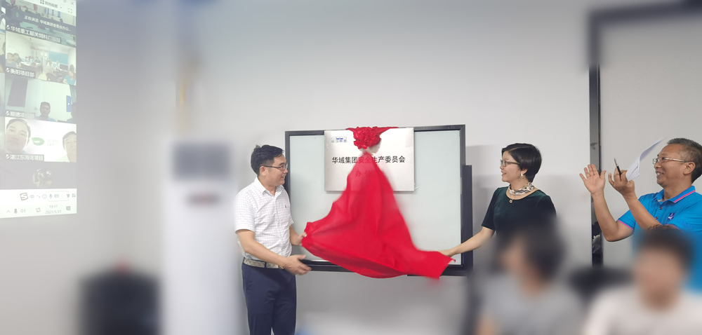 華域集團總裁兼華域集團安委會常務副主任趙付欣隨后宣讀了關于成立集團安委會的通知,接著易新河董事長與華域建設總經理兼華域集團安委會副主任姚玲一起為華域集團安全生產委員會辦公室揭牌。