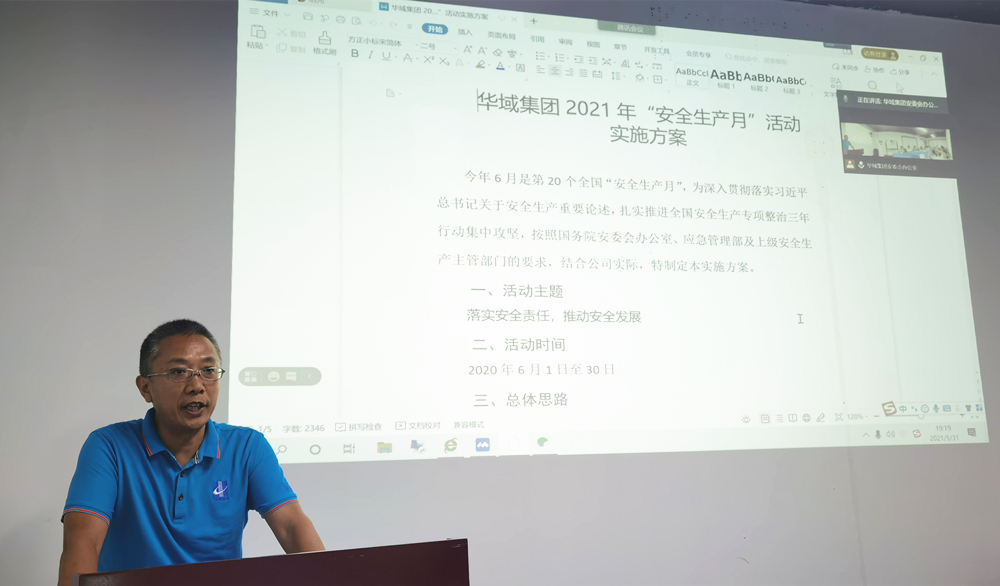 2021年5月31日晚,華域集團舉行2021年“安全生產月”視頻動員大會,華域集團董事長兼華域集團安全生產委員會(簡稱:華域集團安委會)主任易新河出席并參加了此次會議。華域集團安委會副主任廖初龍擔任此次動員大會的主持,華域集團安全生產委員會成員及華域集團各子公司——華域建設、華域重工、華域科技機關及各在建項目部等25個單位的近200位管理人員通過“云端”的方式參加了此次動員大會。