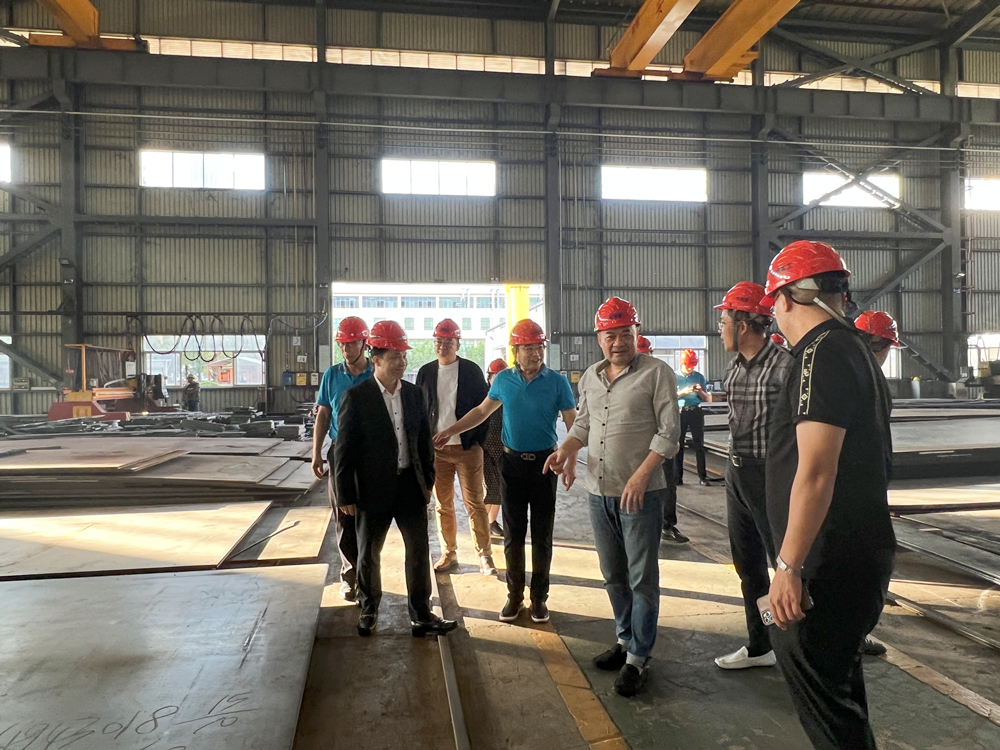 易新河董事長率眾高層陪同蔡岳會長一行先是深入工廠車間參觀,向蒞臨的領導介紹華域重工工廠的布局、產能、制造加工流程、目前正在制造的產品和具體用途,以及正在通過建設二期工廠來擴充產能等。