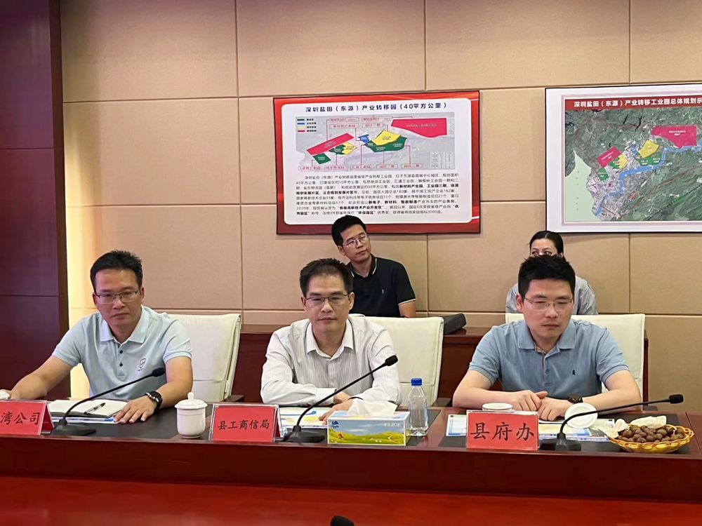 10月23日,易新河董事長、姚玲總裁及趙付欣總經理陪同蔡岳會長一行來到東源縣考察交流,受到東源縣縣委副書記、縣長劉大榮、副縣長陳飛燕、東源縣工業開發區管委會主任陳桂輝、東源縣工商局局長藍超委等領導的接見。