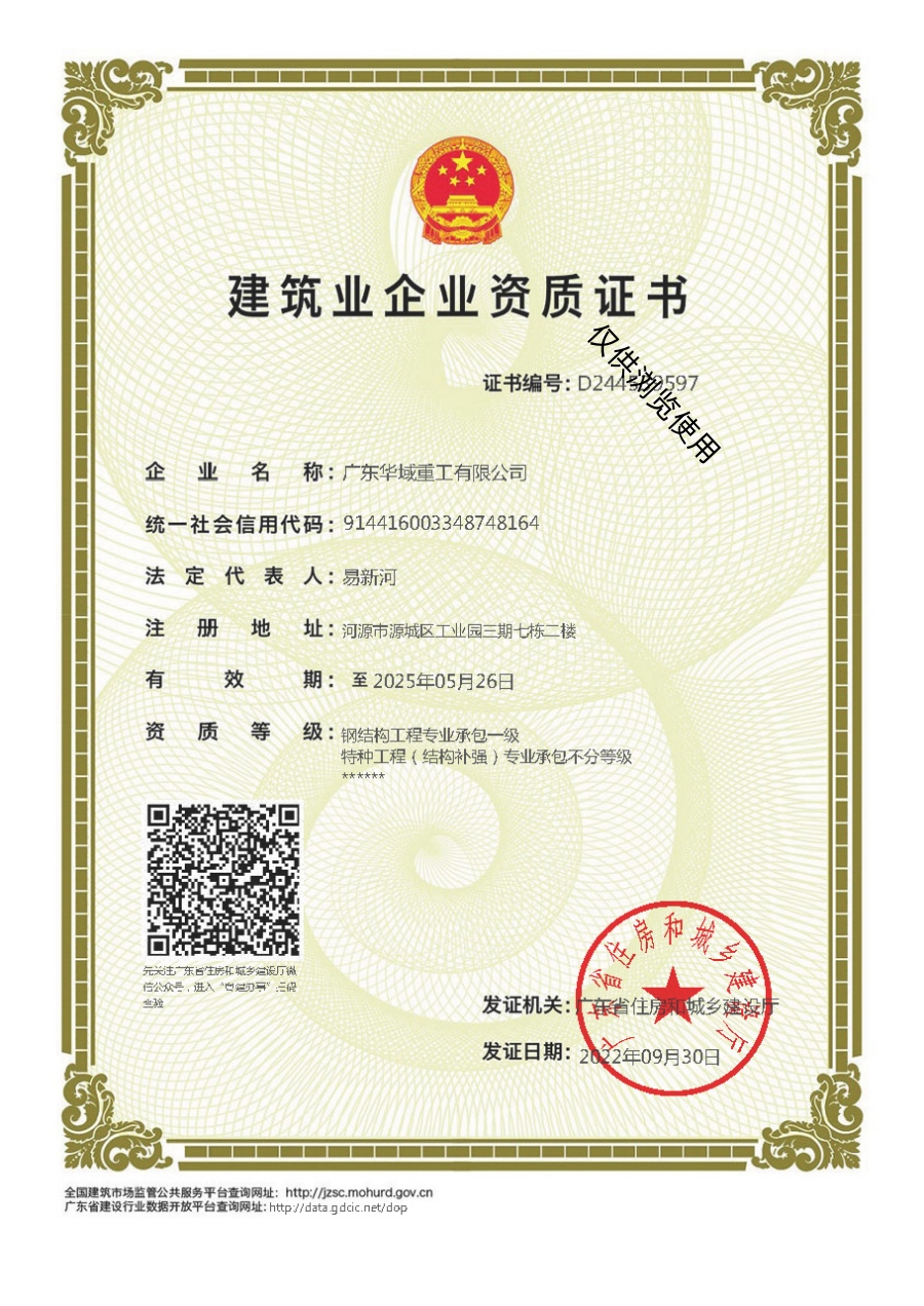 華域集團目前擁有的資質還包括鋼結構工程專業承包壹級、鋼結構制造壹級、機電工程施工總承包壹級、建筑...