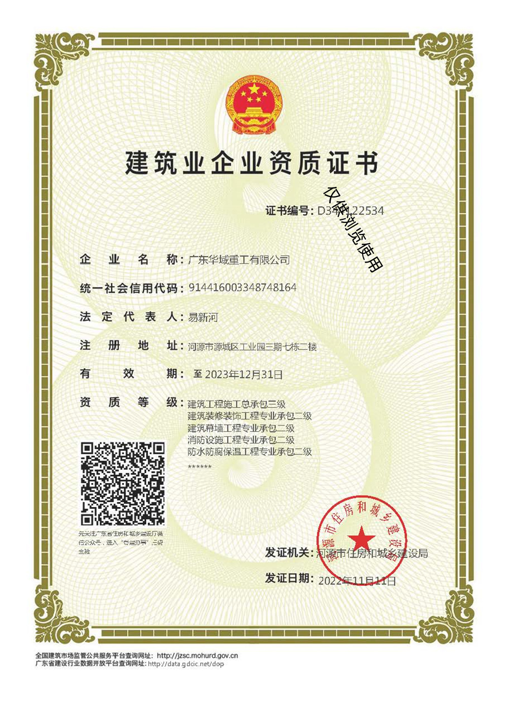近日,經住建部門審核,華域重工新增消防設施工程專業承包二級資質。