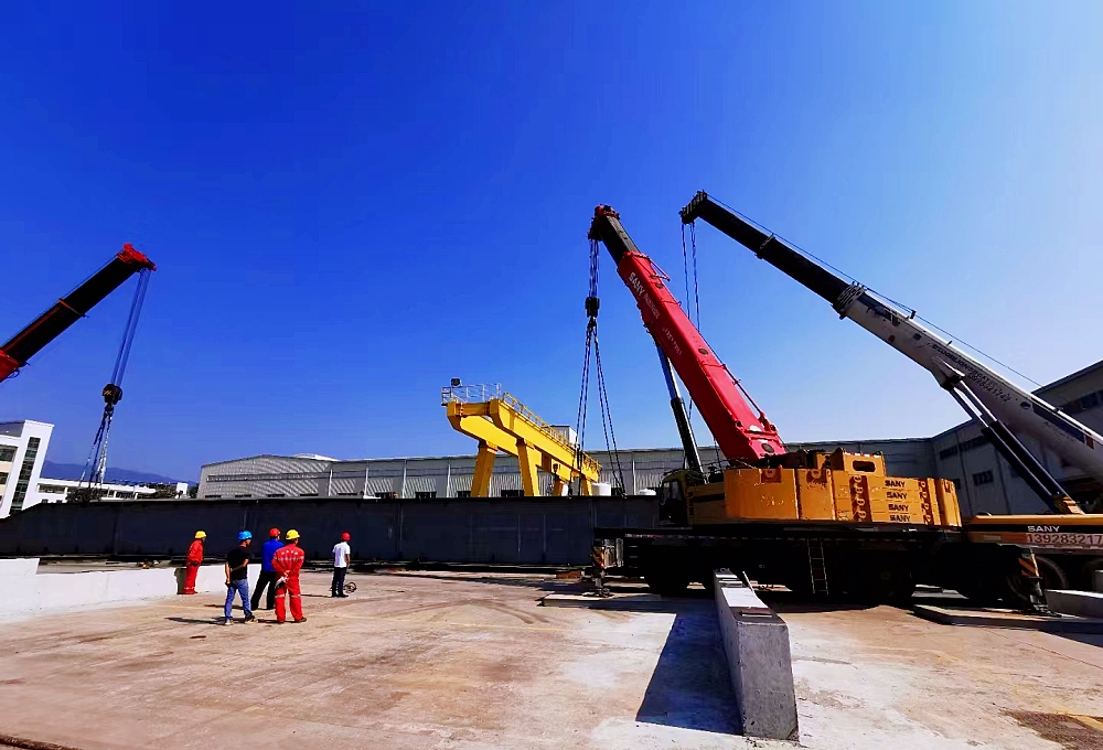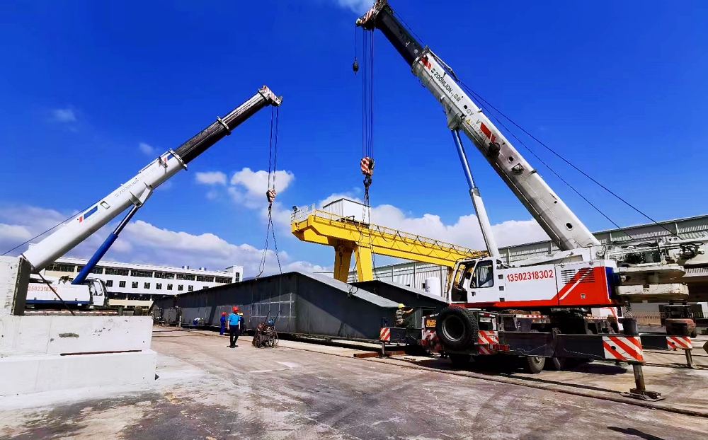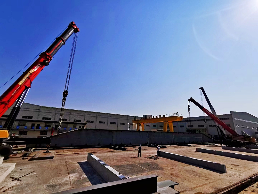 該72米大跨鋼箱梁單根截面3.4*2.8米,重達220噸,焊接制作要求高、難度大,且需同時制作兩根。華域重工經過整體預拼裝、整體焊接、外觀處理及焊縫驗收等一系列工序后,為確保施工現場順利安全提升,還在工廠進行了加載實驗。實驗包括加載1000噸外力的鋼梁撓度測量,焊縫及板材內部組織變化情況測定等,僅一次實驗便達到了設計要求的所有標準。