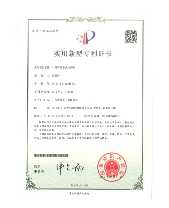 一種可調節式三腳架專利證書