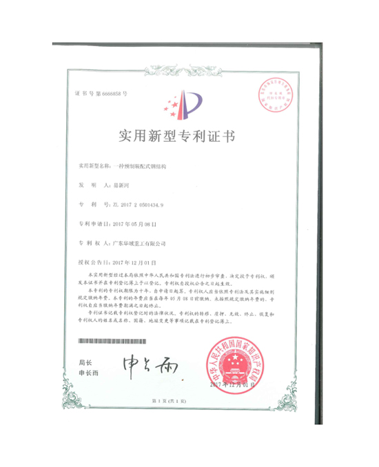 實用新型一種預制裝配式鋼結構2017專利證書
