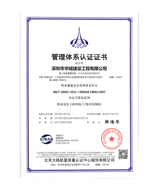華域建設OHSAS18001職業健康管理體系認證